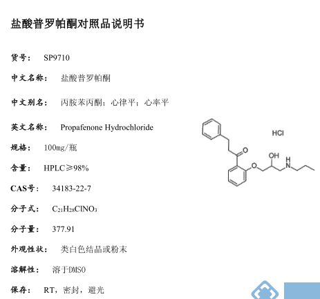 Propafenone Hydrochloride;盐酸普罗帕酮